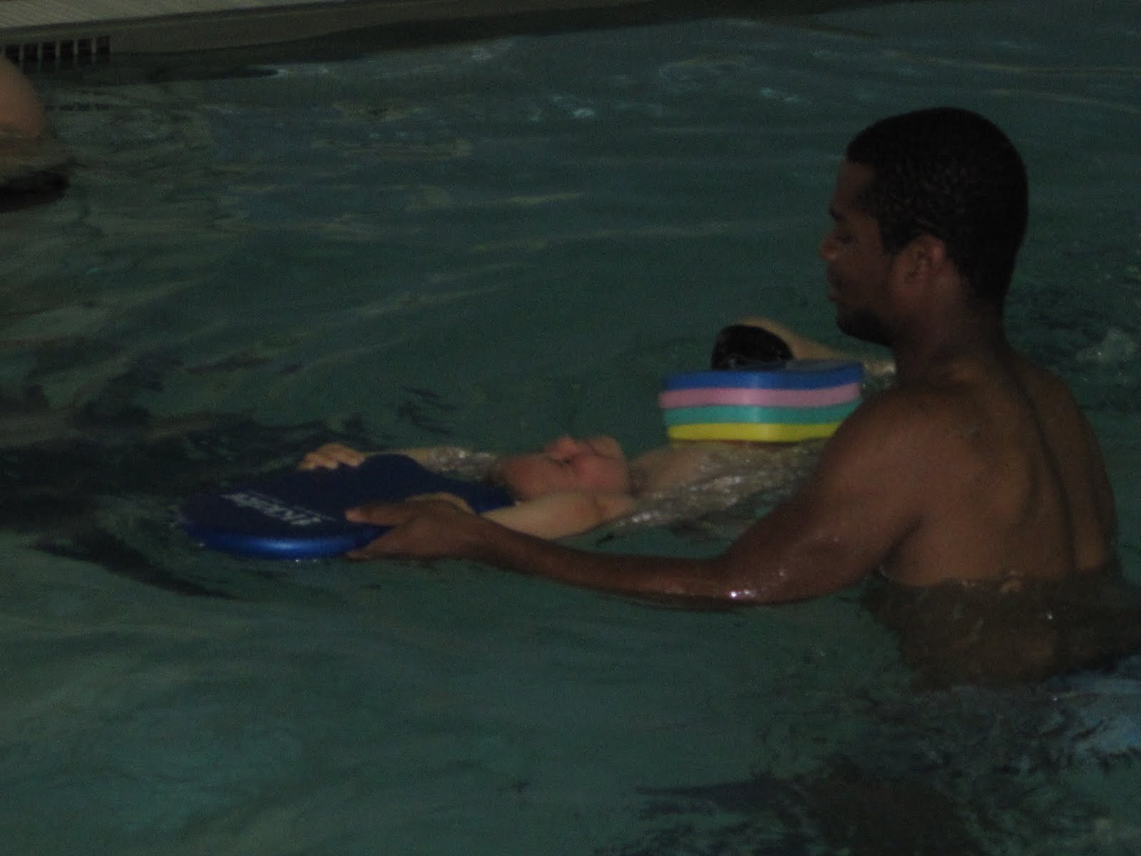 Dan and I are so proud of Gabriel. He started swimming on his own this past weekend at Jellystone. Today at swim lessons, Gabriel did such a great job. When he was let go to swim across the pool, he did it with no help. He still has a lot to learn and practice still, but we are so proud that he's doing it on his own now.